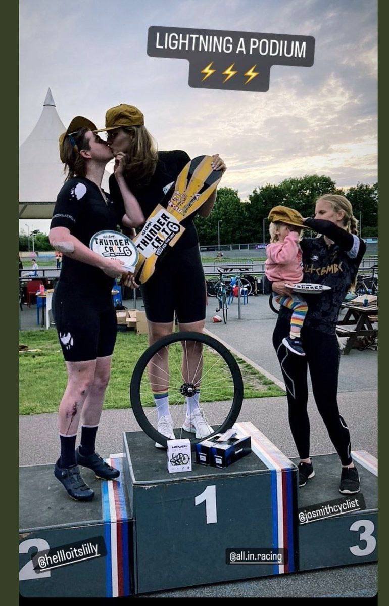 La foto lo dice todo. Dos Hombres que se creen mujer , pero biológicamente son mas fuertes y tienen mas músculos que las mujeres biológicas , ganan una carreta de bicicletas de mujeres. Sin embargo la imagen del 3 lugar muestra la verdad natural.