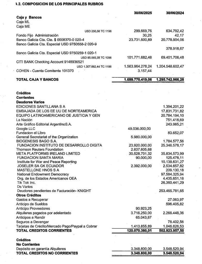 Según consta en su memoria y balance institucional correspondiente a este período, Chequeado admite haber recibido::