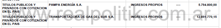 Según consta en la documentación oficial correspondiente al período 2024, el funcionario declara participaciones en compañías energéticas como Pampa Energía (controlada mayormente por el grupo de Marcelo Mindlin) por 5.794.800 pesos y Transportadora de Gas del Sur por 12.891.770,15. Se trata de firmas que operan dentro del sistema de transporte y distribución de gas natural en la Argentina, ámbito sobre el cual el ENARGAS ejerce funciones de regulación, control y supervisión.